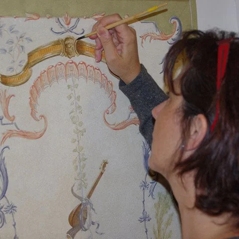 Formée et diplômée à l’Ecole d’Art Mural de Versailles, elle maîtrise les techniques ancestrales et contemporaines.