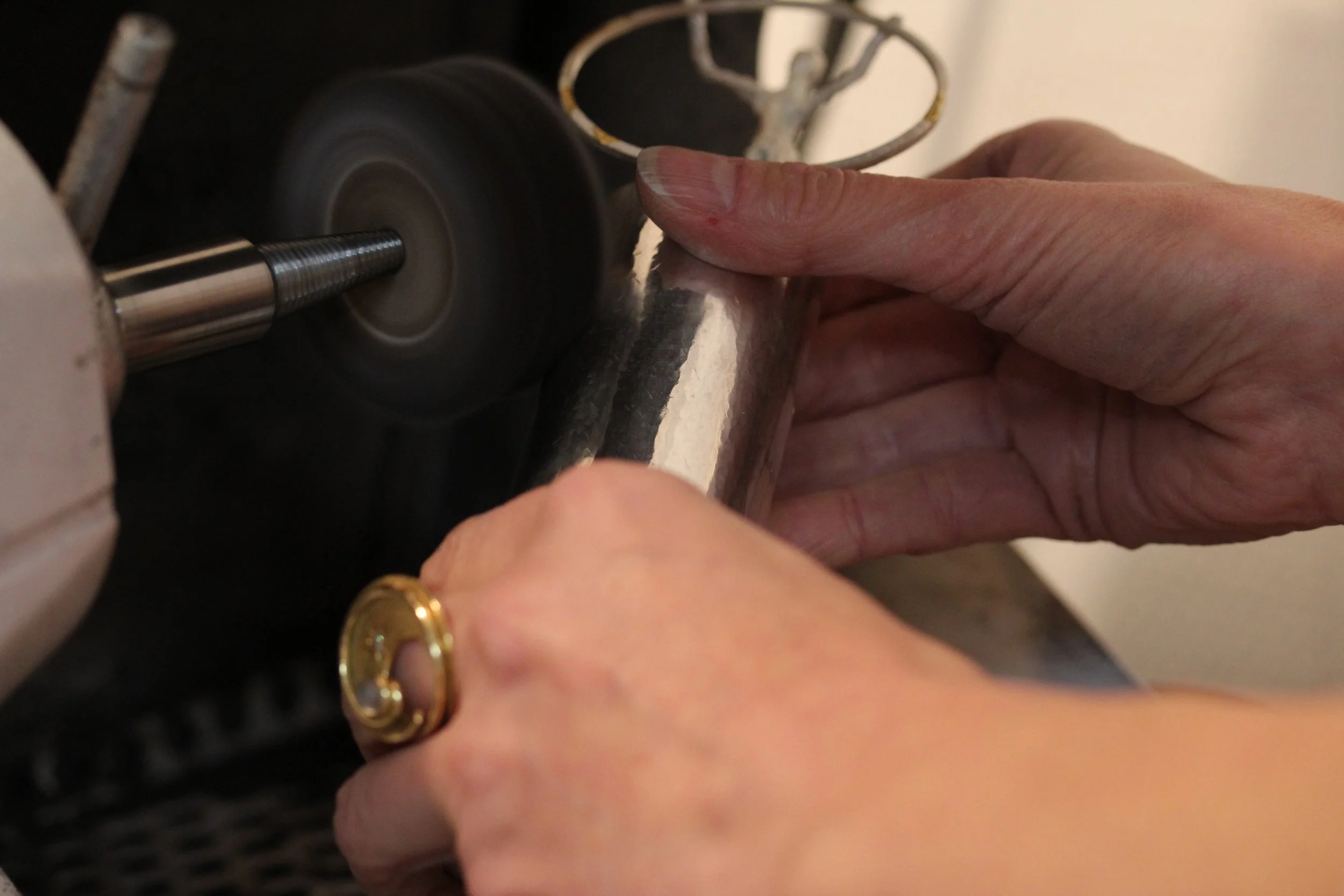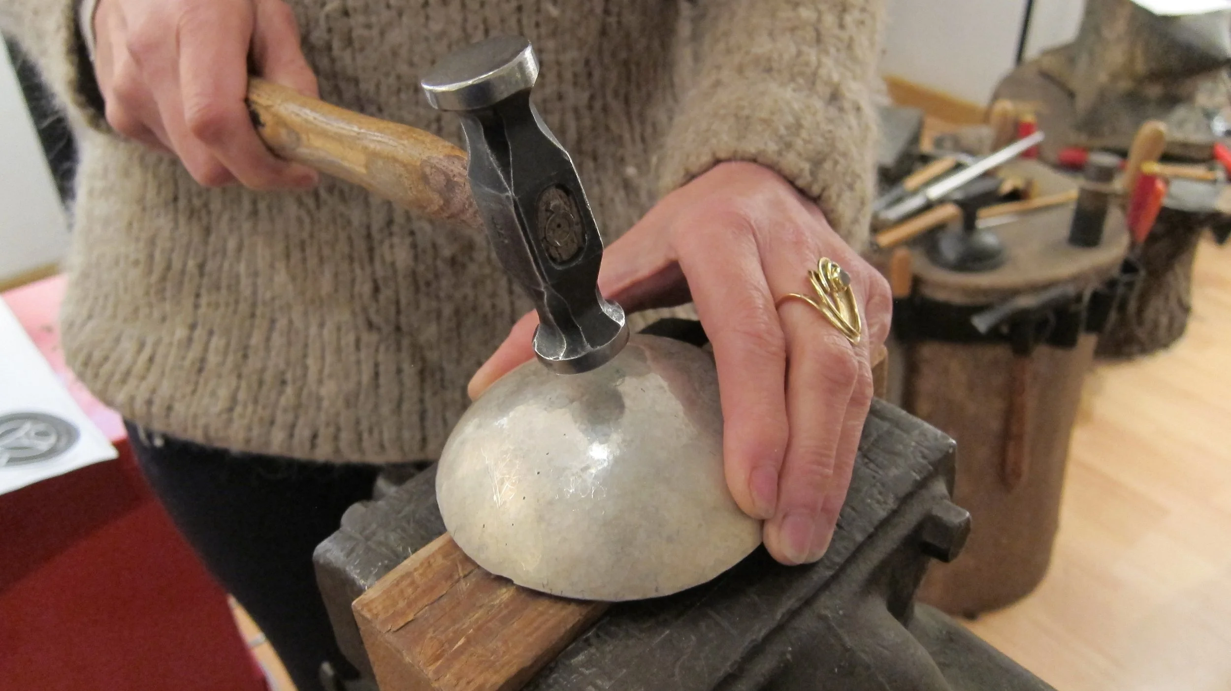 Karen Gay et l'orfèvrerie, c'est avant tout l'histoire d'une passion, celle de forger à la main l'argent massif pour fabriquer des œuvres uniques.